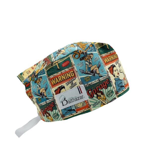 Le calot de bloc court est la plupart du temps utilisé par les professionnels de santé qui ont les cheveux courts. Sa coupe ne permet pas de couvrir la tête entièrement.